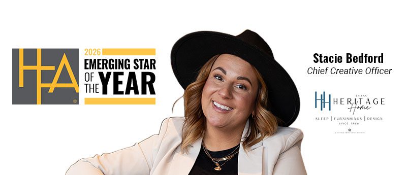 When the Home Furnishings Association named Stacie Bedford, Chief Creative Officer of Evans’ Heritage Home, the recipient of the 2026 HFA Emerging Star Award, it wasn’t just recognizing talent. It was honoring vision, resilience, and a reimagined approach to what independent home furnishings retail can be.
